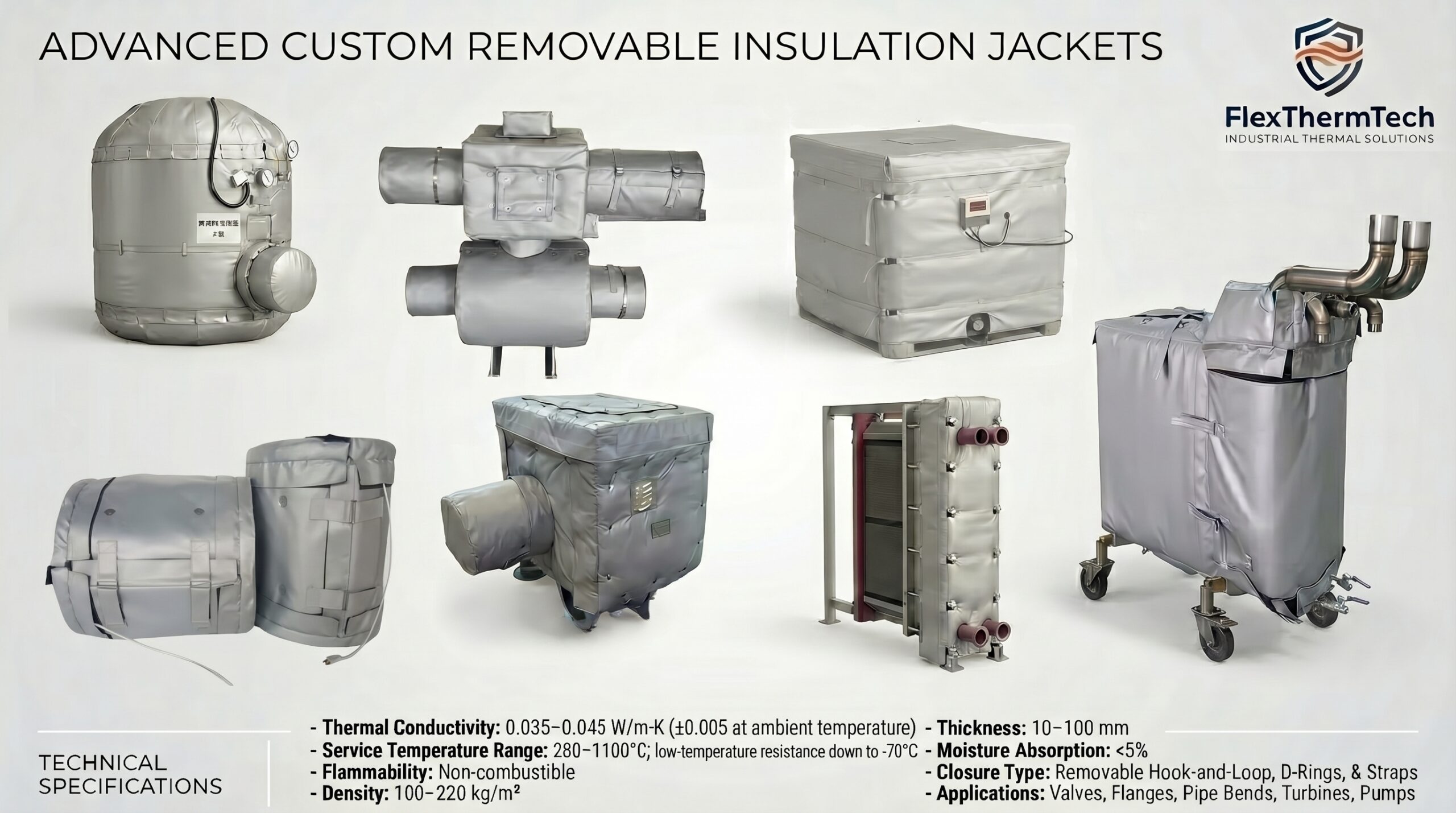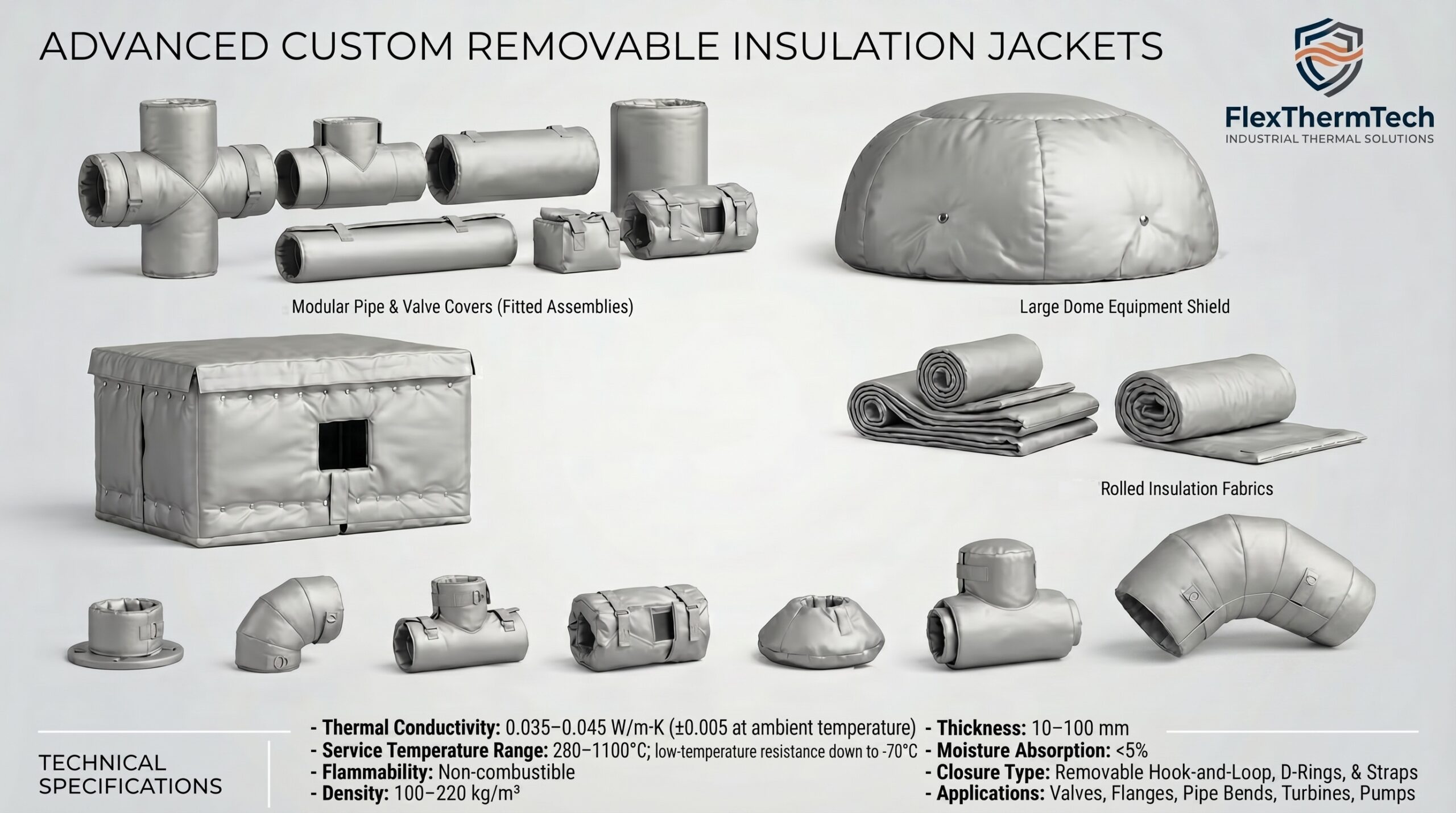 FlexThermTech specializes in custom removable insulation solutions for industrial components that require both thermal efficiency and practical service access. Our core product focus includes removable insulation covers for valves, flanges, joints, pumps, and other hot or maintenance-access equipment, as well as custom thermal blankets for irregular or non-standard applications.